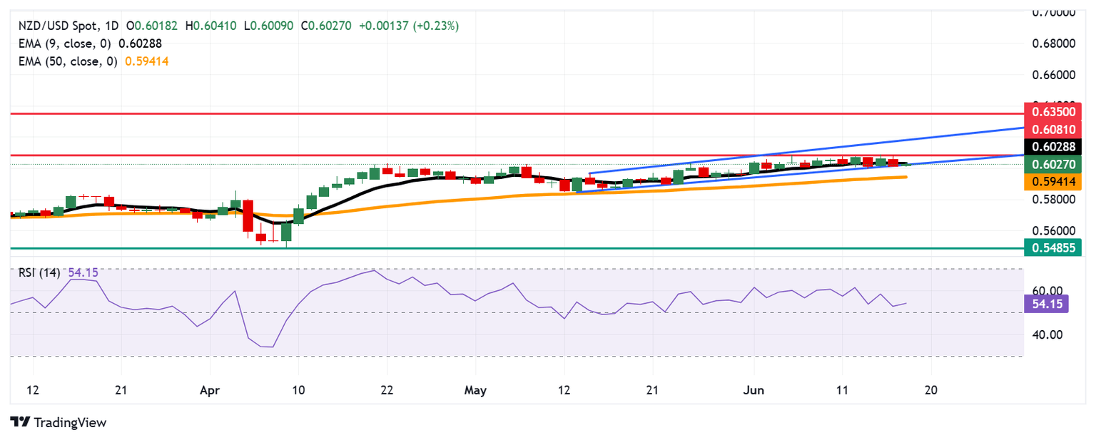 NZD/USD Price Forecast: Tests ascending channel’s lower boundary near 0.6000