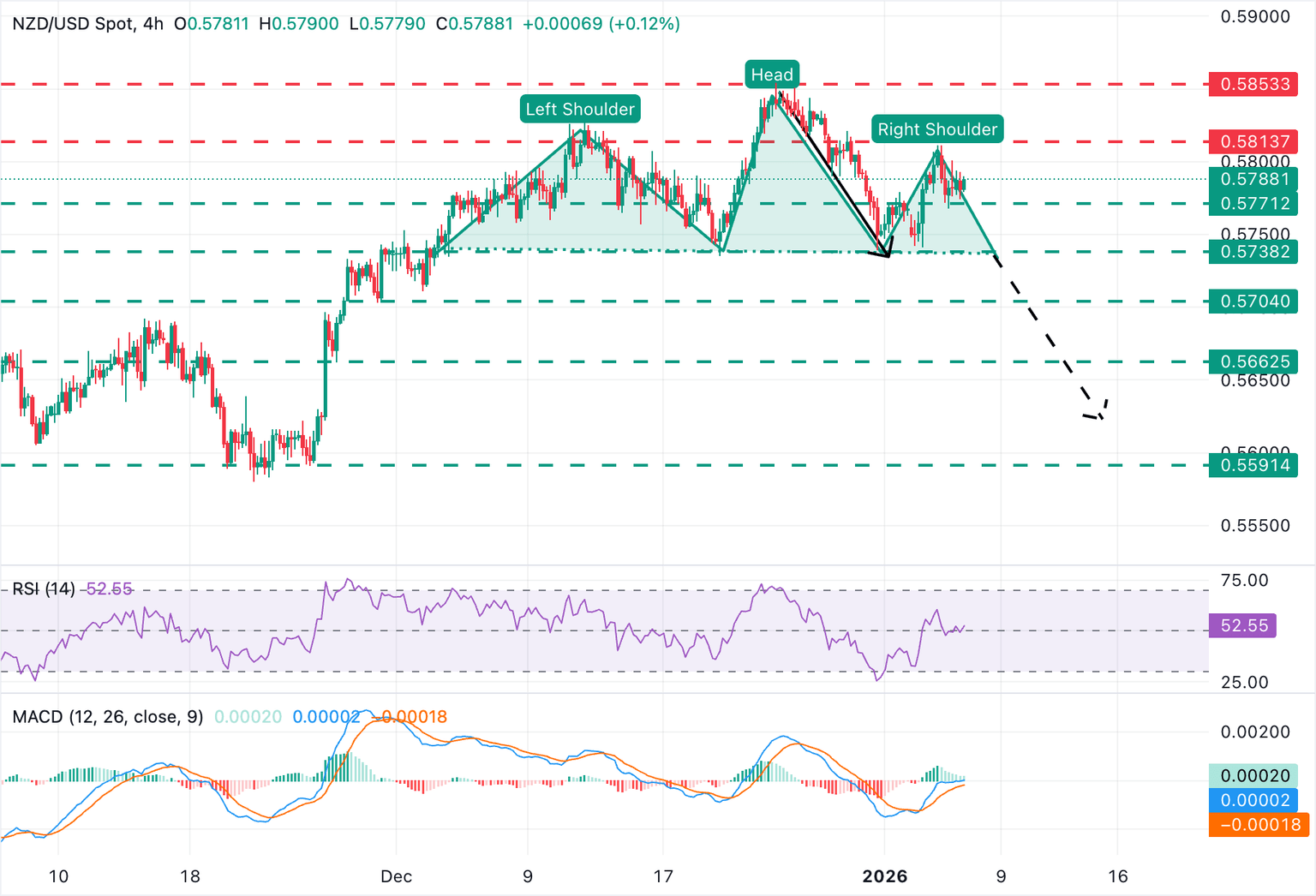 - Kiwi's rejection at 0.5800 has printed the left shoulder of a potential H&S pattern.