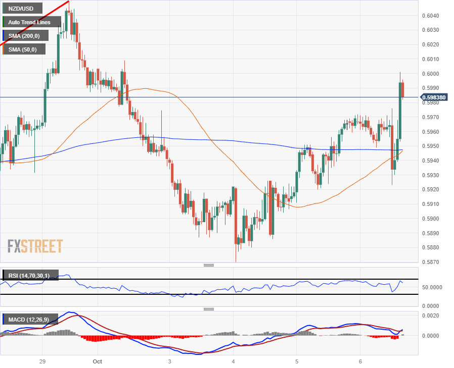 With the US NFP barrelshot out of the way, markets are stepping away from the US Dollar (USD) to close out the trading week, and the NZD/USD has rebounded from Friday's low of 0.5923 and is now trading back slightly into 0.5980 after briefly tipping into the 0.6000 major handle.