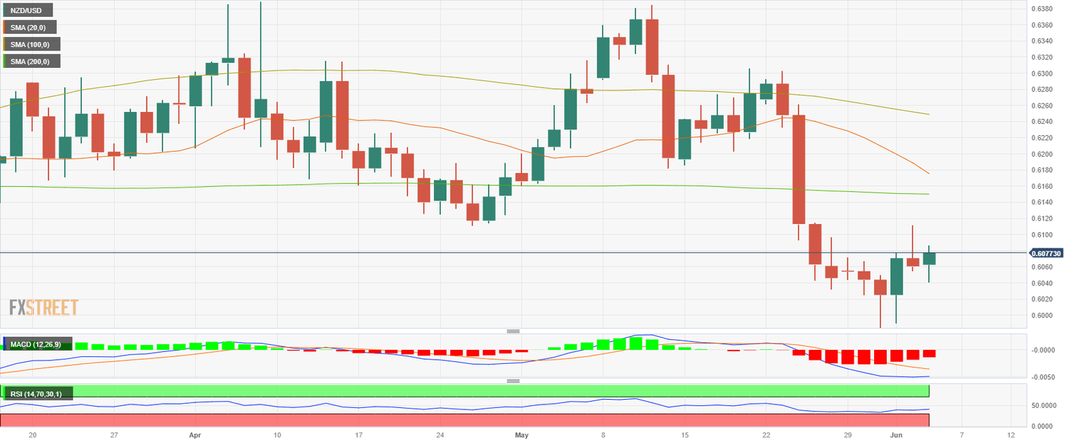 - NZD/USD rebounded around 0.6085 after bottoming at the lowest since November last week