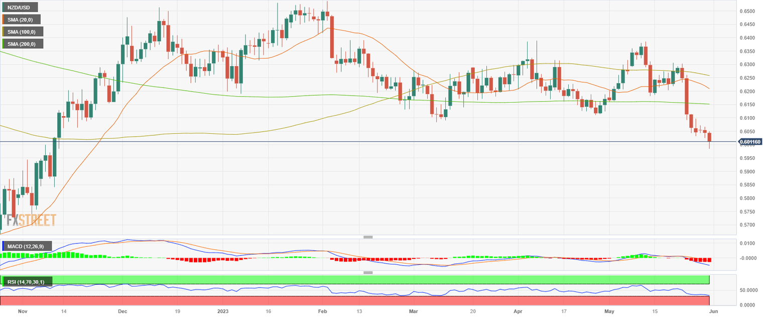 The NZD/USD has reached its lowest levels in several months due to the increasing strength of the US Dollar. This is primarily driven by uncertainties surrounding the latest US data from the US and concerns about the passage of the debt-limit bill, which is facing resistance in both chambers of the US Congress. In addition Patrick Harker from the Philadelphia Federal Reserve (Fed), commented that the Fed doesn’t have to hike at every meeting and seems to be limiting the Greenback’s gains. On the other hand, the New Zealand economic calendar won’t have any relevant news to offer for the rest of the week.