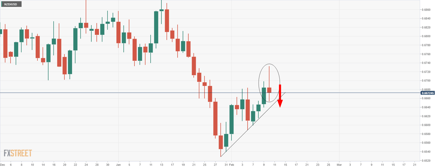 - NZD/USD bears are lurking in an attempt to take on the daily trendline support.