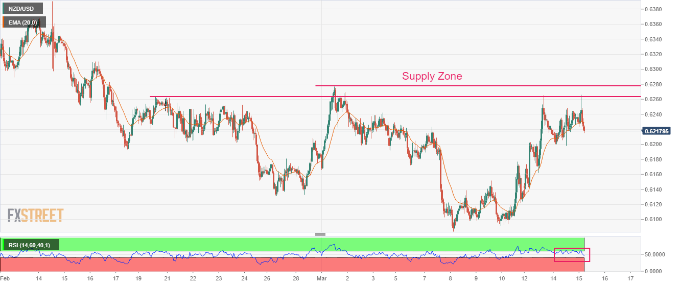 - NZD/USD has sensed heat while attempting to surpass the 0.6250 resistance despite the risk-on impulse.