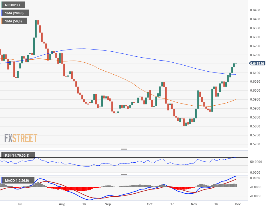 The NZD/USD is trading flat in Thursday's US trading session, battling back into 0.6150 after seeing a technical rejection from the 0.6200 handle on Wednesday.