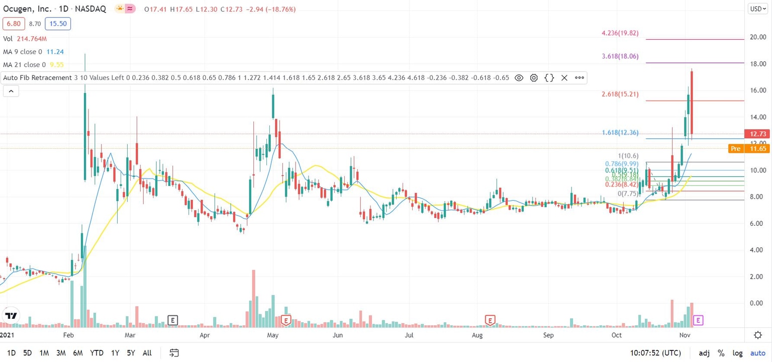 OCGN bounded 12.1% to close at $15.67 on Tuesday, just one day after it pumped 18.1% to $13.98.