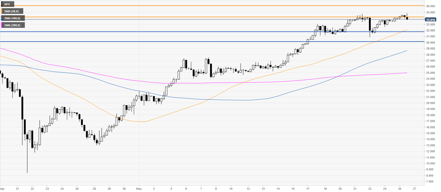 - Strong resistance is capping oil near the 34.25 level.