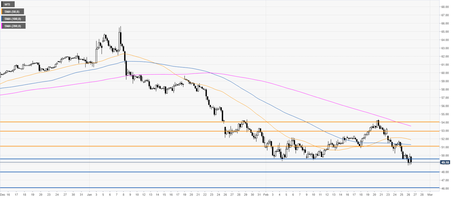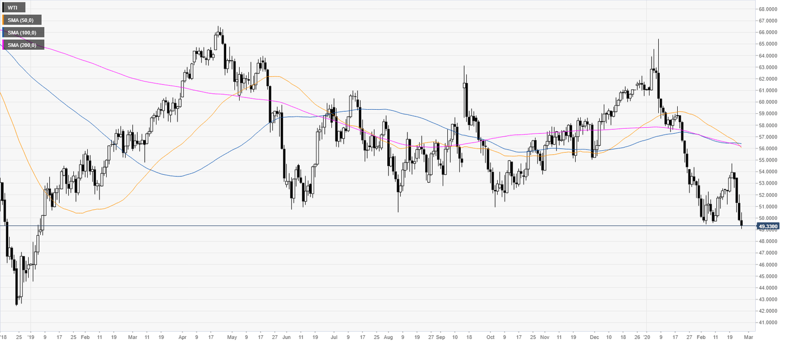 Oil Price Analysis: WTI trades at its lowest since January 2019
