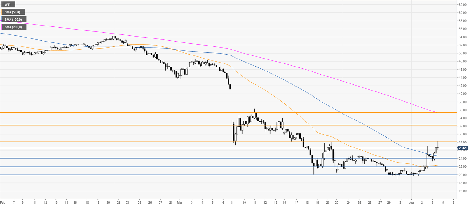 Oil Price Analysis: WTI trades in three-week’s highs near $26.50 a barrel