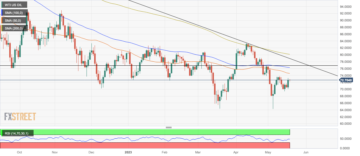 - Oil price trades with losses as the US Dollar strengthens on hawkish Federal Reserve speeches, US debt-ceiling uncertainty.