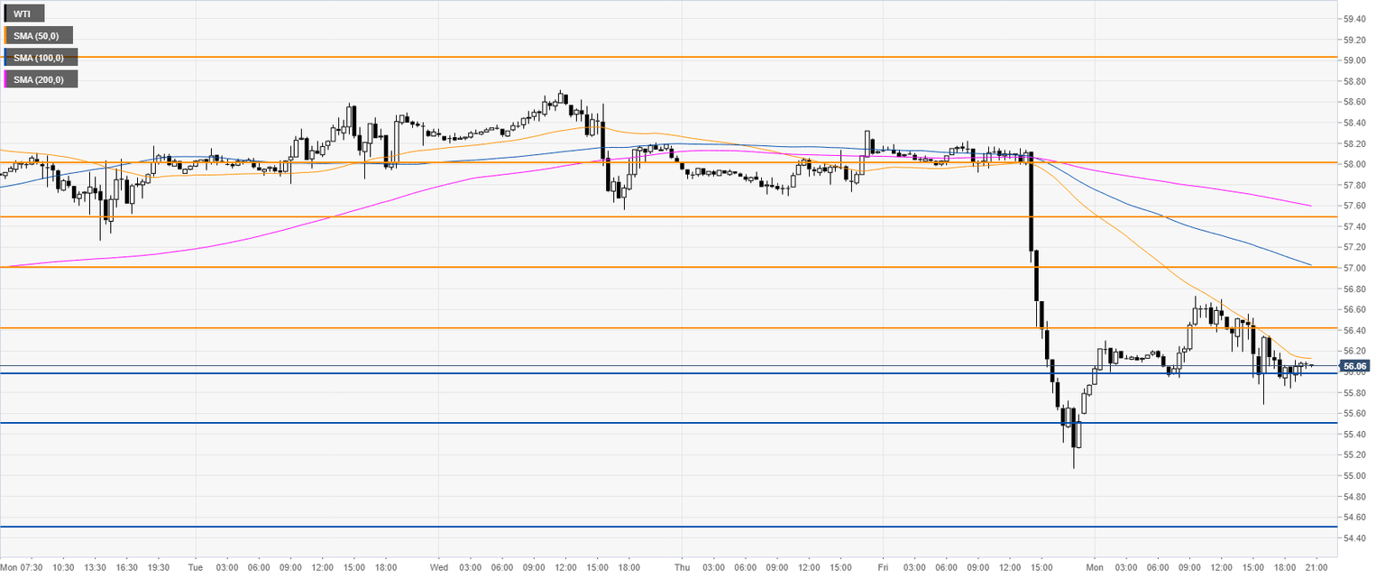 WTI is correcting the bear breakout below the 200 SMA on the four-hour chart. The market seems vulnerable to the downside. However, more consolidation might be on the cards in the medium term.