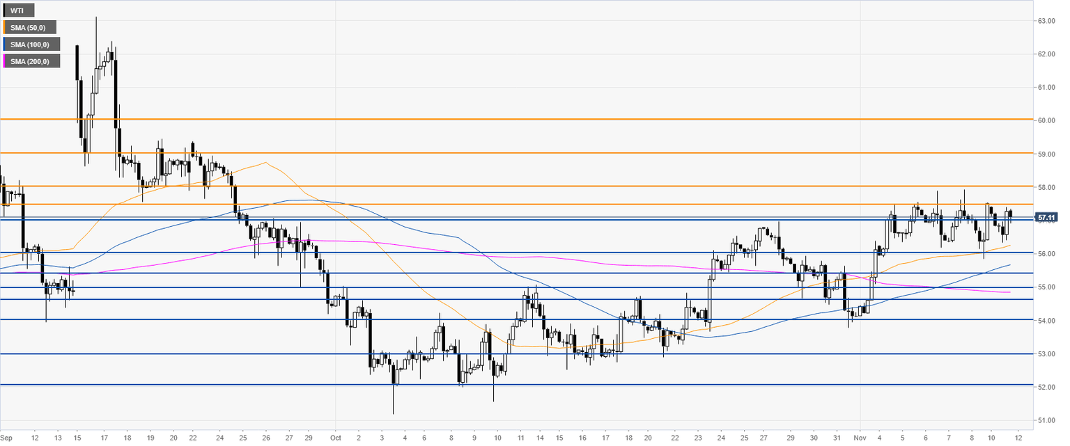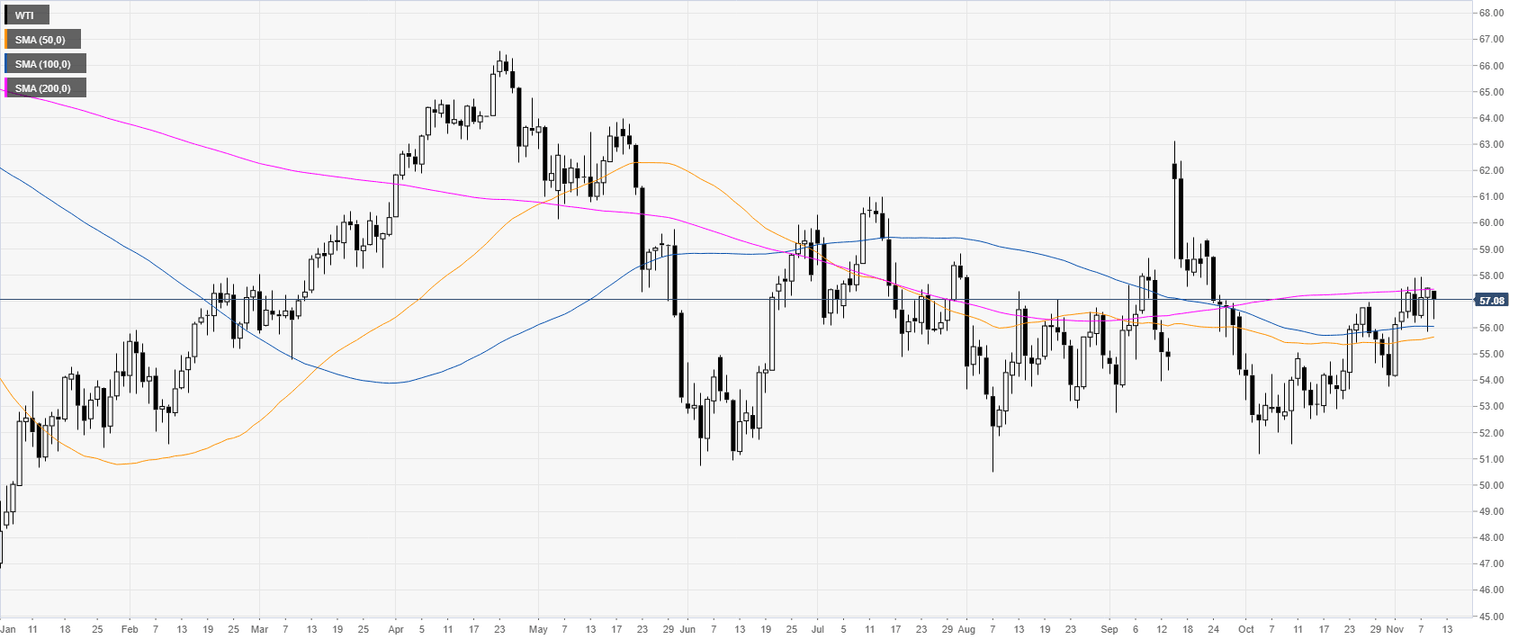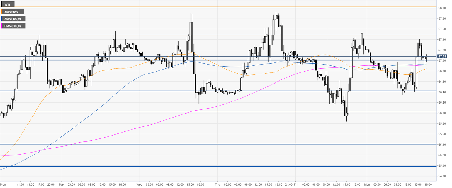 The crude oil West Texas Intermediate (WTI) is challenging $57.00 a barrel and the 200-day simple moving average (DMA) while the market has been consolidating for the most part of last week.