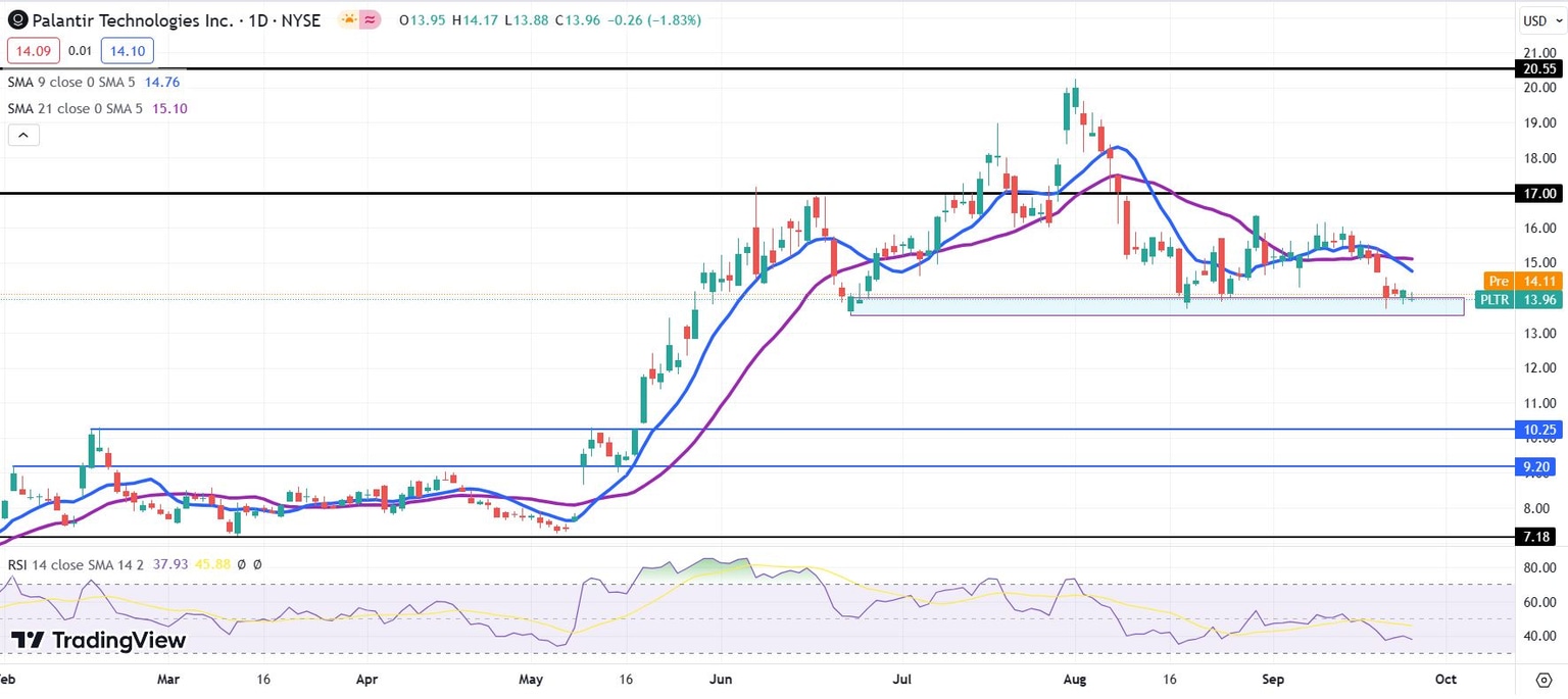 Palantir will be back on a more attractive footing once it climbs above the 21-day Simple Moving Average (SMA), which is currently at $15.10. The US equity market has been trending lower since July, and this pressure has been felt by Palantir as well. The S&P 500 is down 3.6% over the past month and 2.1% over the past five sessions.