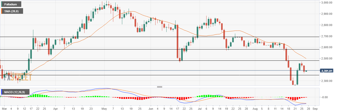 Palladium Price Analysis: XPD/USD remains depressed below $2,400