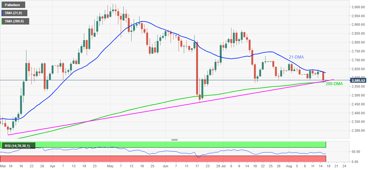 Palladium Price Analysis: XPD/USD sellers look for fresh entries below $2,577