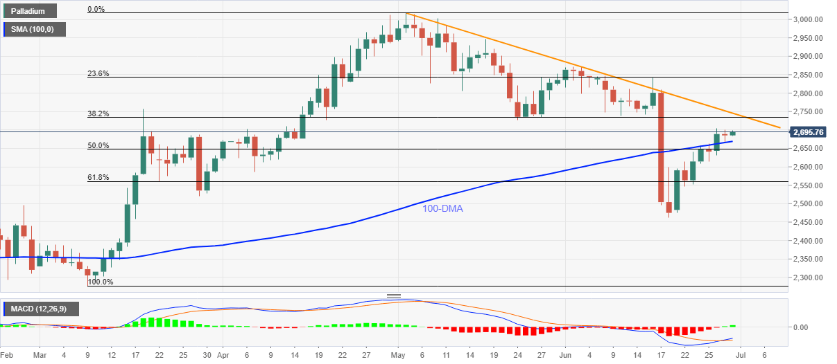 Palladium (XPD/USD) buyers keep the controls around $2,695, up 0.34% intraday, ahead of Wednesday’s European session.
