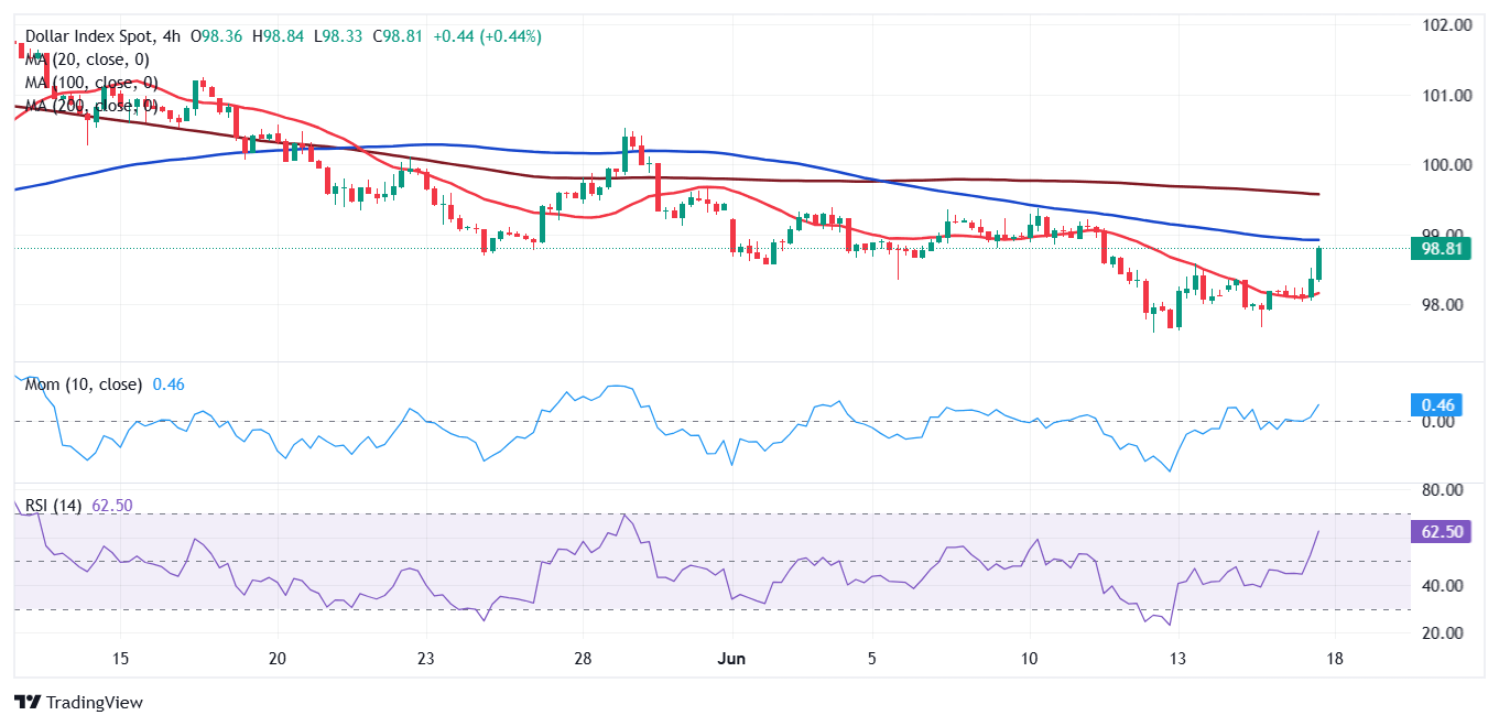 The US Dollar (USD) accelerated its advance with mounting fears, with the Dollar Index (DXY) hovering around 98.80 at the time of writing.