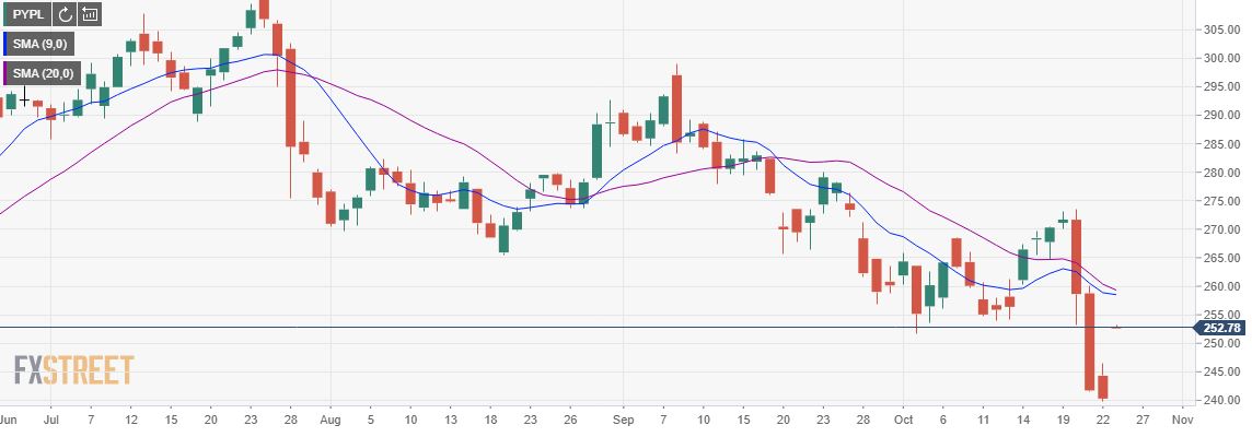 Resistance further up is just above $265, which was a prior source of support until September but is now likely to act as a barrier. Beyond that, the high from last week at $273.50 will be another source of resistance, as some traders will likely take profit here. The fourth target is $280, where PYPL stock experienced several sessions of resistance here in August.