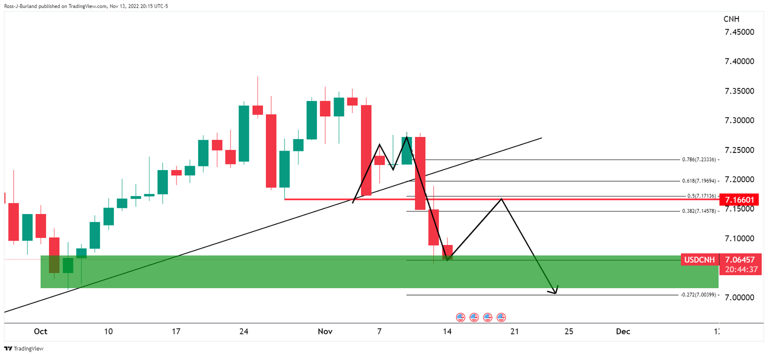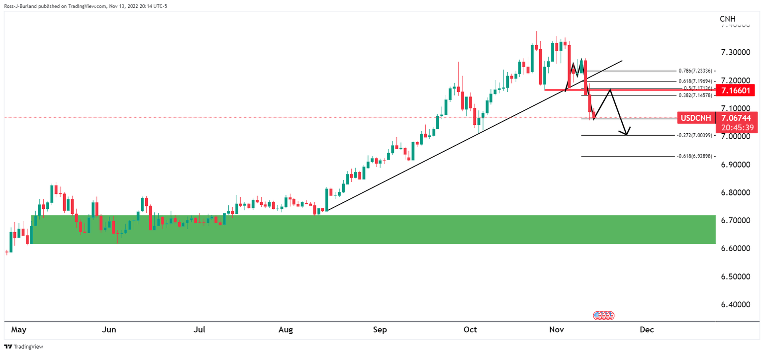There is potential for USD/CNH to test 7.0000 as the following chart illustrates:
