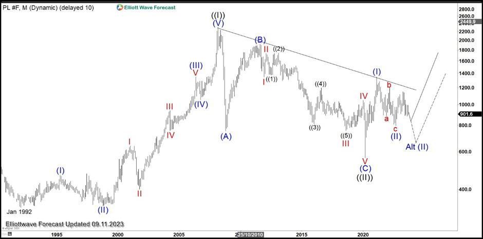 Platinum (PL) monthly Elliott Wave chart