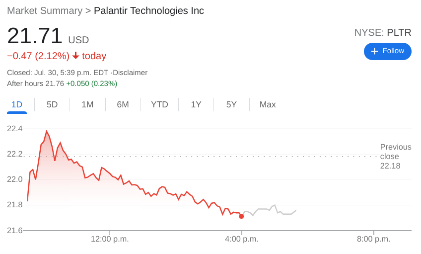 PLTR News: Palantir Technologies falls as the stock sheds 12% during July