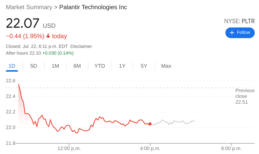 - NYSE:PLTR dipped by 2.00% on Thursday ending its recent three day winning streak.