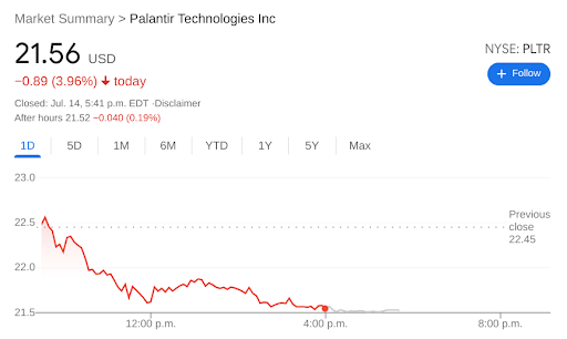 NYSE:PLTR is officially in trouble as the broader growth sector sell off on Wednesday pushed the stock down towards another support area. Shares of Palantir fell by 3.96% on Wednesday, and closed the trading session at $21.56. It has been a bloody week for Palantir so far and it just happens to coincide with OPEX, or the week where options contracts expire for the month of July. OPEX week has historically caused the markets to remain stagnant as market makers attempt to hold prices to maximize profits from writing options contracts.