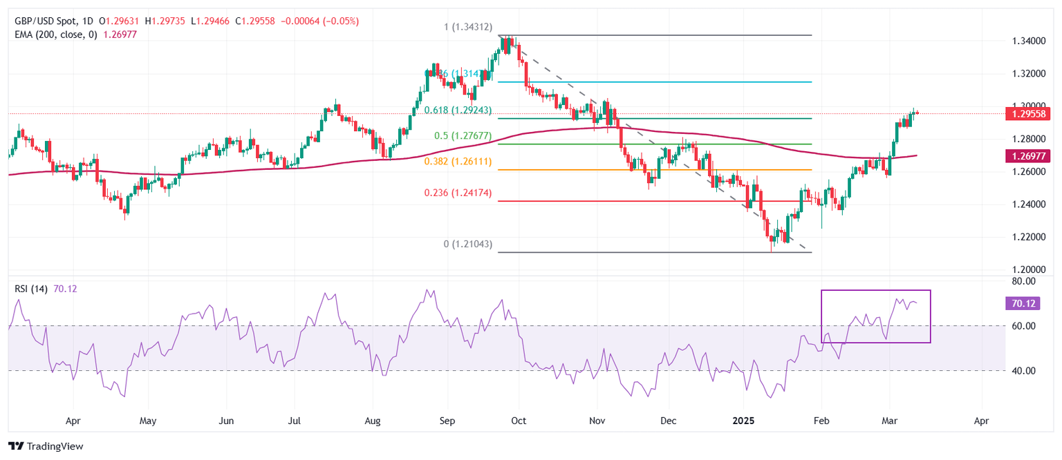 - The Pound Sterling trades with caution as Donald Trump's tariff measures have dampened the appeal of risk-sensitive assets. Market participants expect Trump’s ‘America First’ policies will lead to high inflation and a global economic slowdown. This has increased the demand for safe-haven assets.