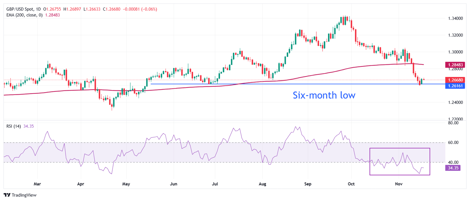The Pound Sterling struggles to hold ground near 1.2600 against the US Dollar after discovering some buying interest. More broadly, the GBP/USD pair remains under pressure as it trades well below the 200-day Exponential Moving Average (EMA) at around 1.2850.