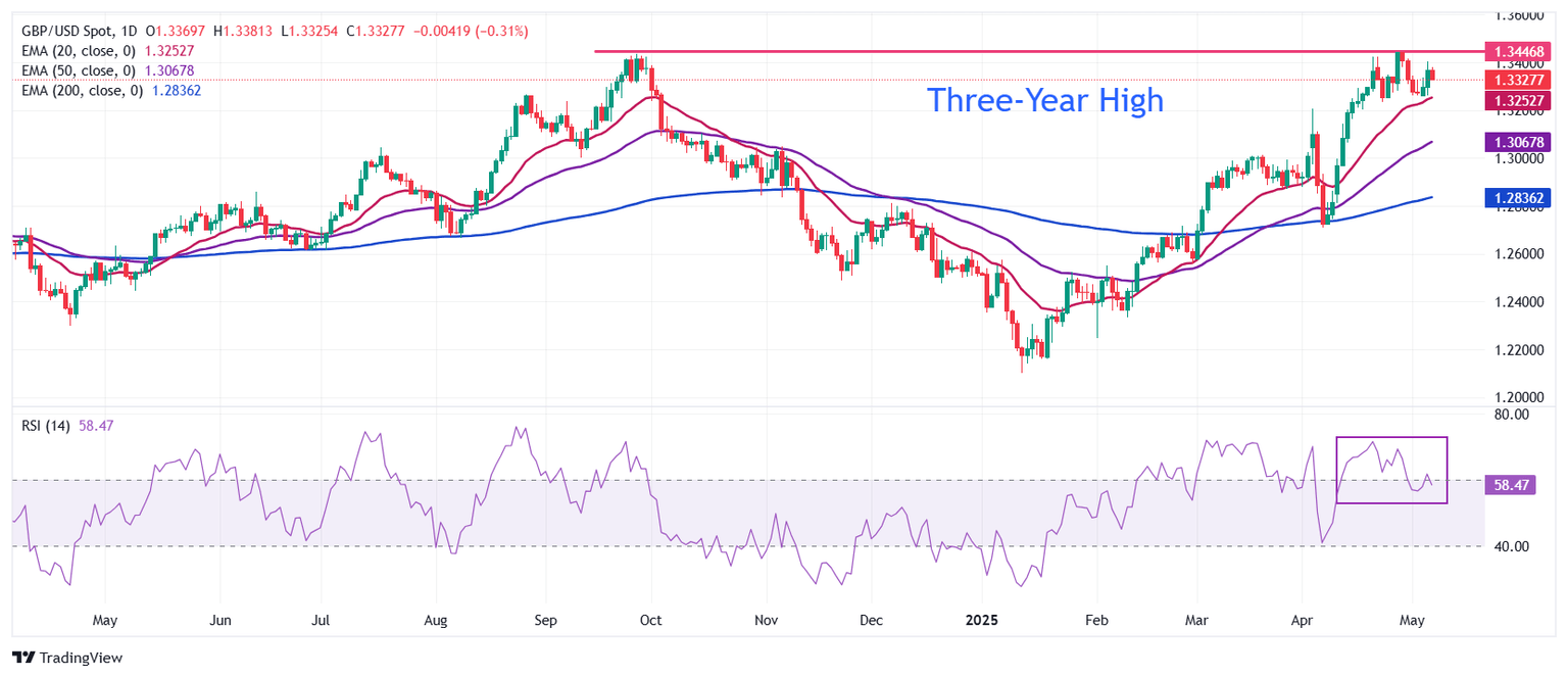 The Pound Sterling (GBP) trades cautiously to near 1.3370 against the US Dollar (USD) during North American trading hours on Wednesday. The GBP/USD pair faces slight pressure, while the USD consolidates ahead of the Federal Reserve (Fed) monetary policy announcement at 18:00 GMT, in which the central bank is almost certain to keep interest rates steady in the current range of 4.25-4.50%.