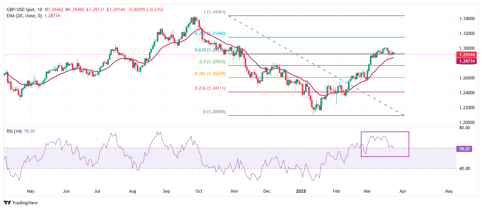 The Pound Sterling trades slightly lower to near 1.2900 against the US Dollar on Wednesday. The GBP/USD pair struggles to hold the 61.8% Fibonacci retracement, plotted from the late-September high to mid-January low, at 1.2930.