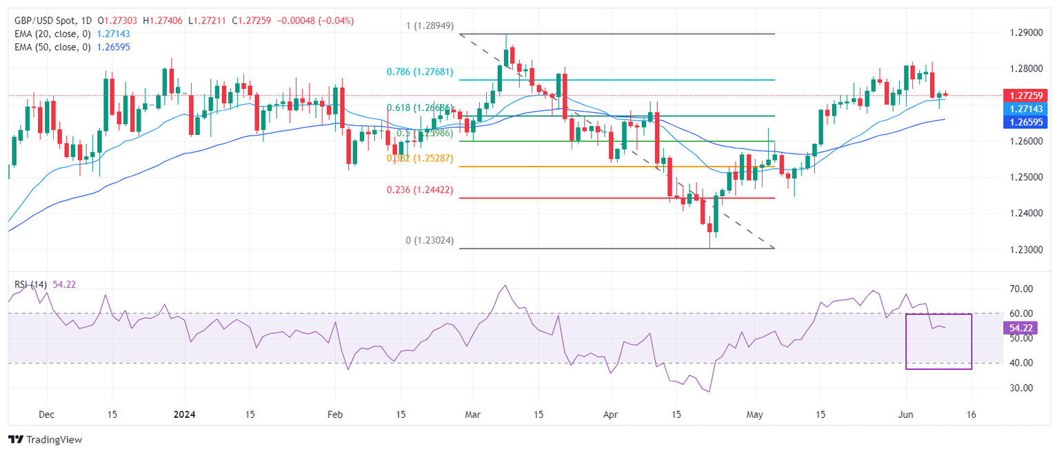 The Pound Sterling finds an interim cushion near the round-level support of 1.2700 against the US Dollar. The GBP/USD pair continues to be well-supported by the 20-day Exponential Moving Average (EMA), which trades around 1.2714. Also, the 50-day EMA is loping higher, suggesting that the near-term trend is still upbeat.