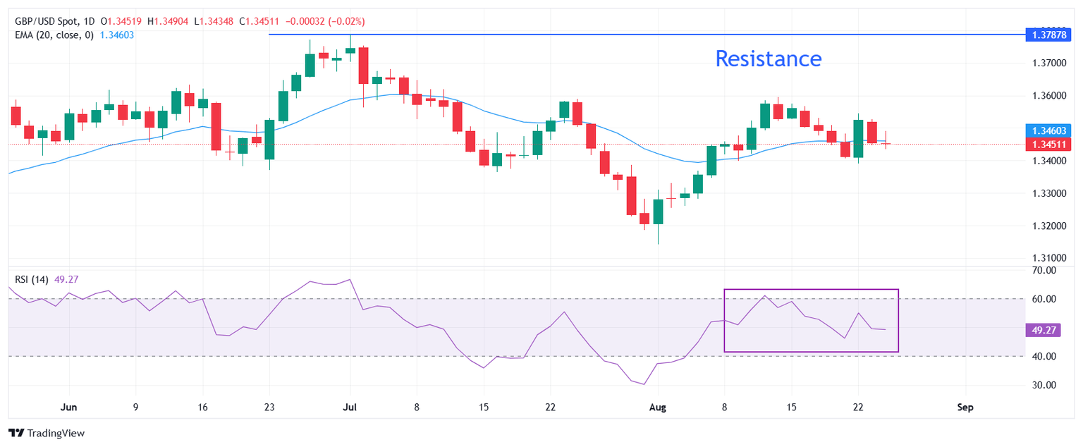 The Pound Sterling moves slightly higher to near 1.3460 against the US Dollar on Tuesday. The near-term outlook of the GBP/USD pair is uncertain as it wobbles near the 20-day Exponential Moving Average (EMA), which trades around 1.3460.