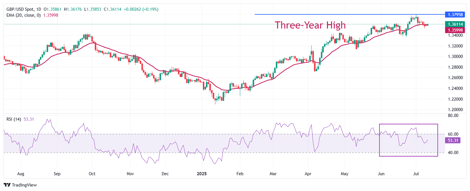 The Pound Sterling trades in a limited range around 1.3600 against the US Dollar on Thursday. The GBP/USD pair wobbles around the 20-day Exponential Moving Average (EMA) near 1.3590, suggesting that the near-term trend is uncertain.