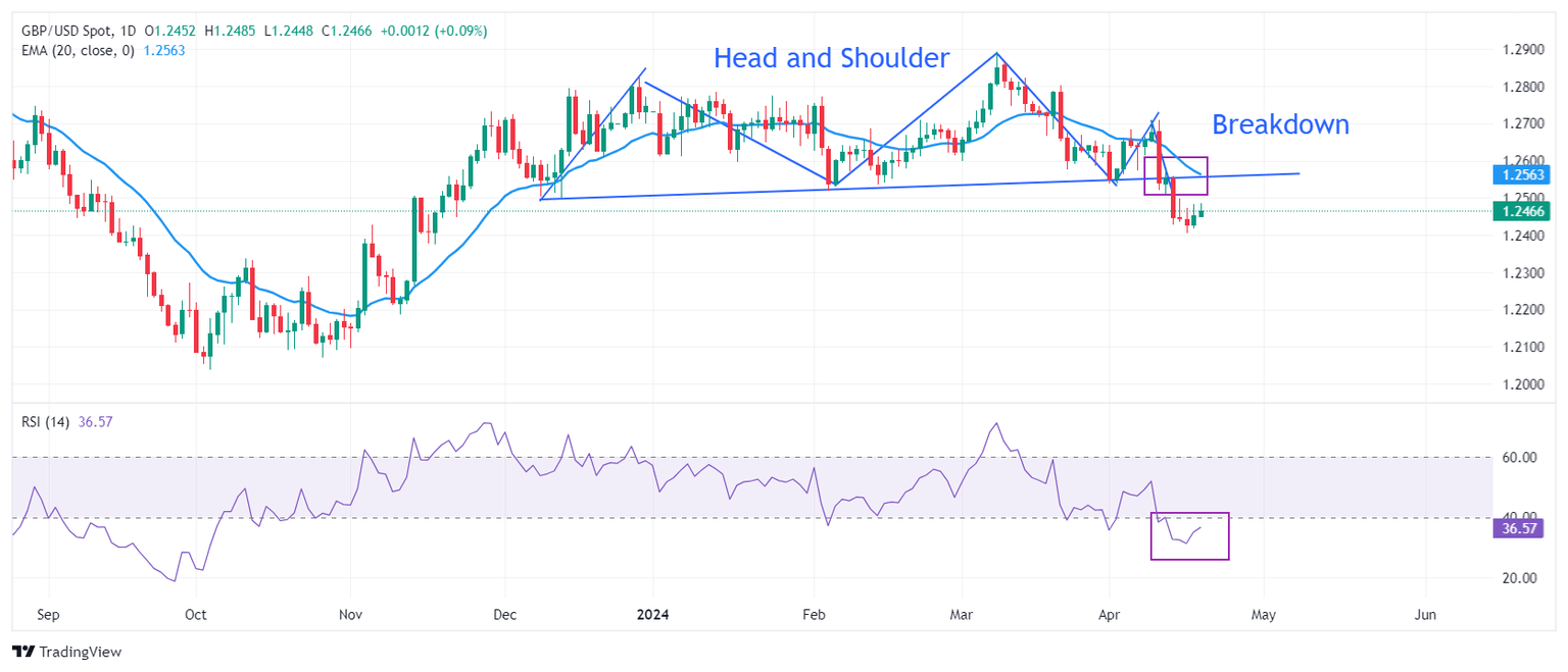 The Pound Sterling aims for firm footing after discovering strong buying interest near the round-level support of 1.2400. The GBP/USD pair rebounds from 1.2400 and focuses on recapturing the psychological resistance of 1.2500.