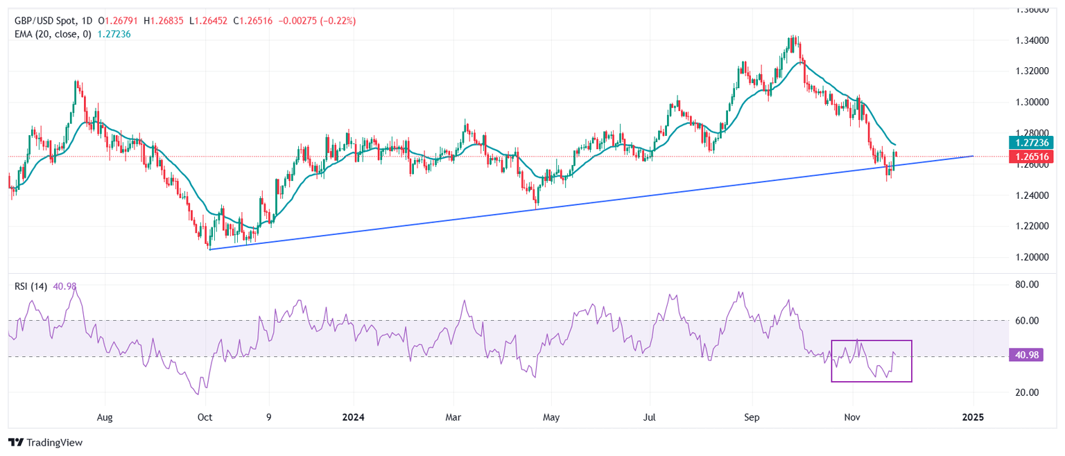 The Pound Sterling falls to near 1.2650 against the US Dollar in European trading hours on Thursday. The GBP/USD pair corrects after posting a fresh weekly high near 1.2700 the prior day. The recovery move in the Cable came after it found buying interest near the upward-sloping trendline around 1.2550, which is plotted from the October 2023 low around 1.2040.
