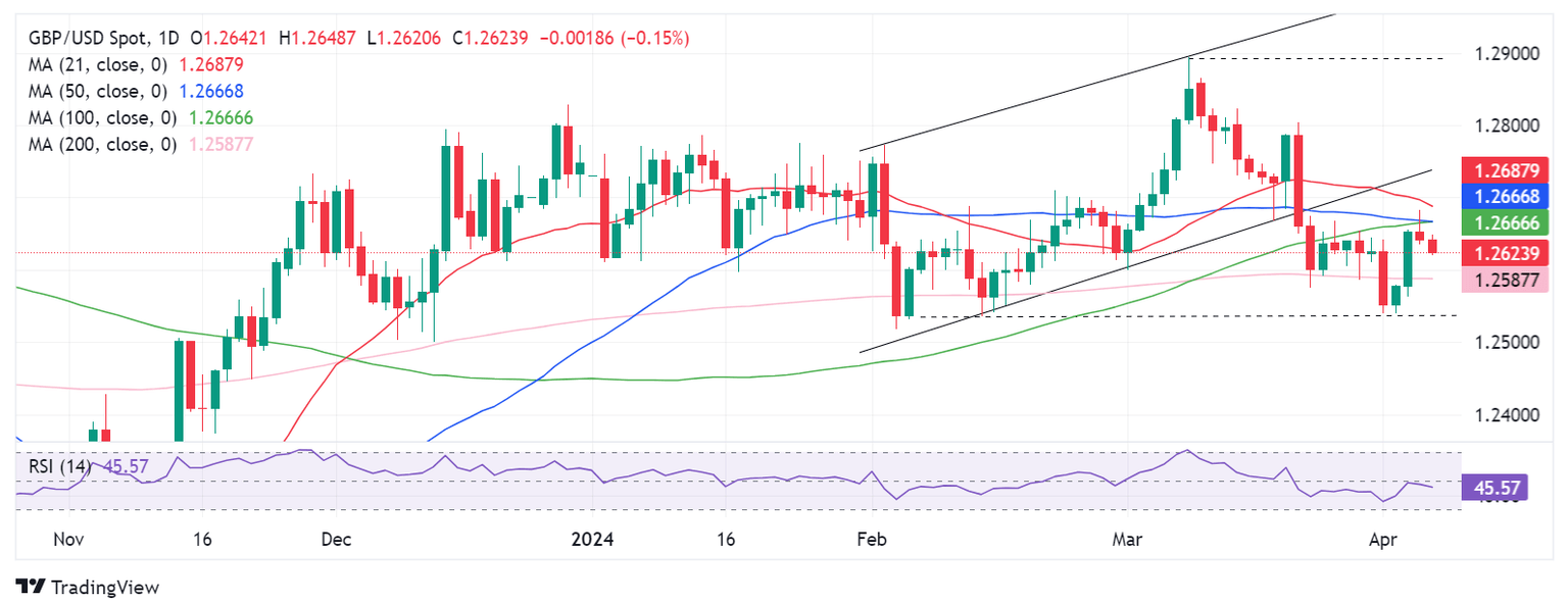 The Pound Sterling (GBP) is trading on the back foot against the US Dollar (USD), as the GBP/USD pair manages to hold above the 1.2600 level at the start of the week on Monday.