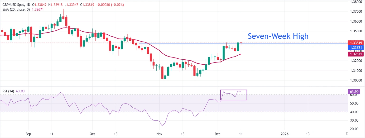 The GBP/USD pair trades in negative territory near 1.3365 during the early European trading hours on Thursday, pressured by the rebound in the US Dollar (USD). Nonetheless, the potential downside might be limited after the US Federal Reserve (Fed) delivered a rate cut at its December policy meeting. Traders brace for the US weekly Initial Jobless Claims report, which will be published later on Thursday. Read More...