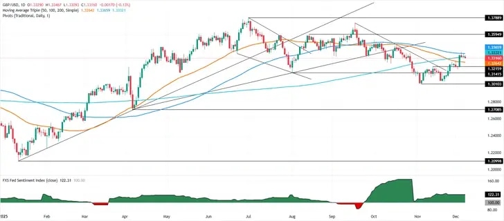 GBP/USD holds firm on Monday at around 1.3325, below the 200-day Simple Moving Average (SMA) of 1.3329 as investors wait for the Federal Reserve’s (Fed) monetary policy decision, which kept the US Dollar (USD) steady across the G10 FX board.