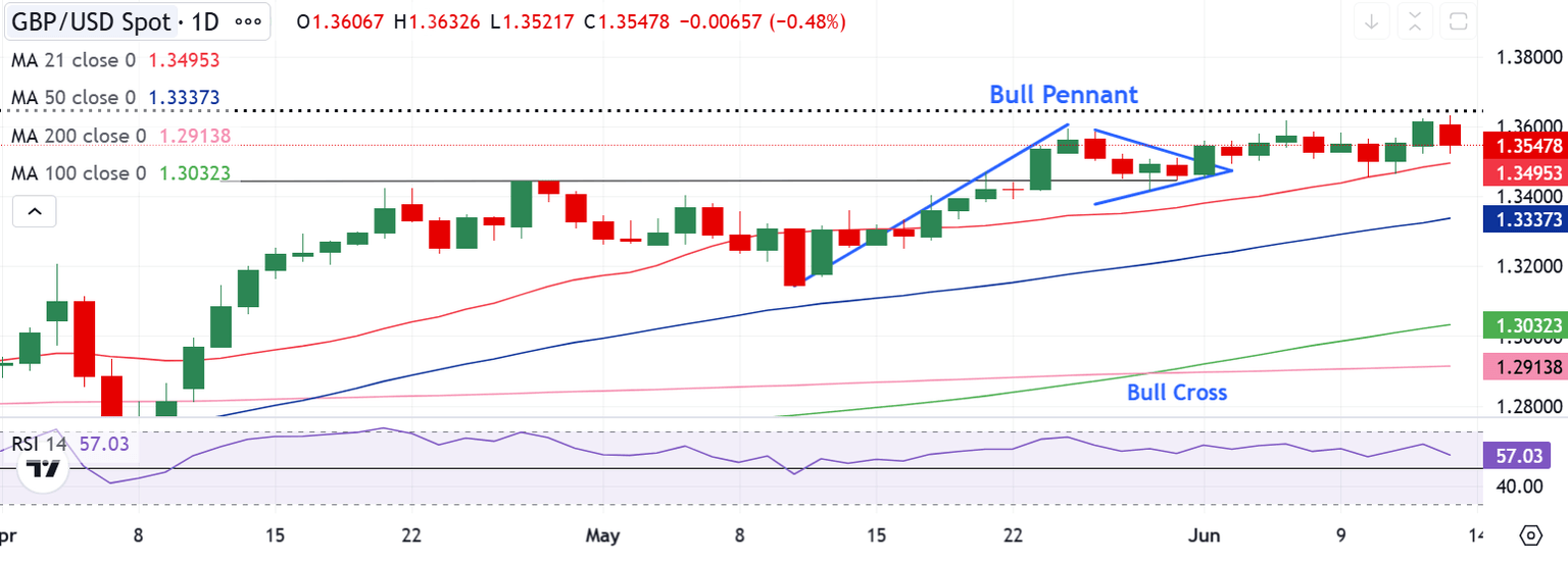 GBP/USD Price Forecast: Treads water above 1.3550, nine-day EMA