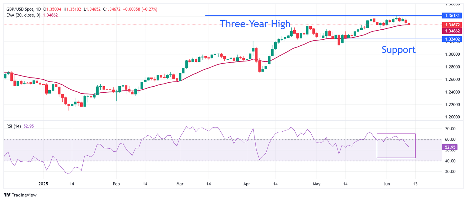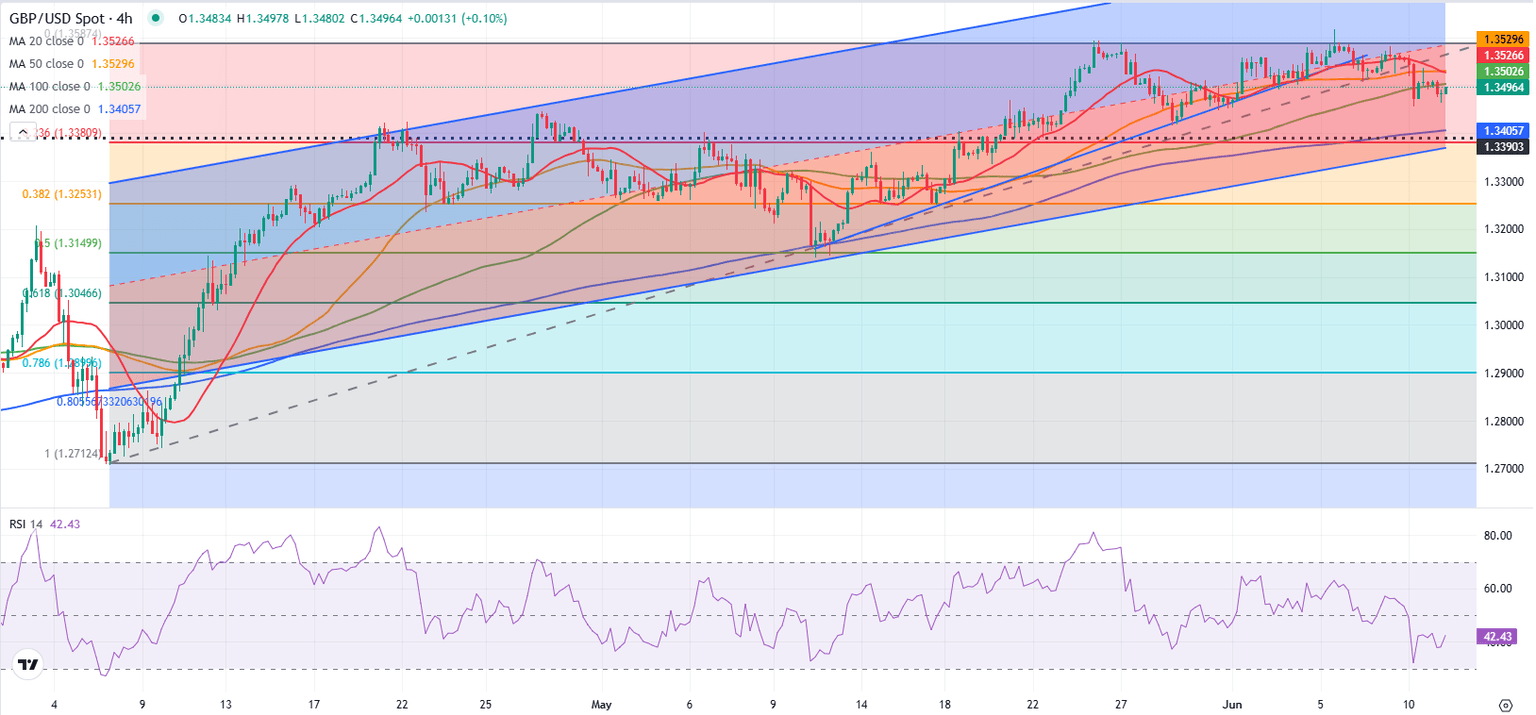 The Pound Sterling (GBP) claws back its early losses against the US Dollar (USD) during European trading hours on Wednesday and flattens around 1.3500. The GBP/USD pair turns calm, while the US Dollar consolidates ahead of the United States (US) Consumer Price Index (CPI) data for May, which will be published at 12:30 GMT.
