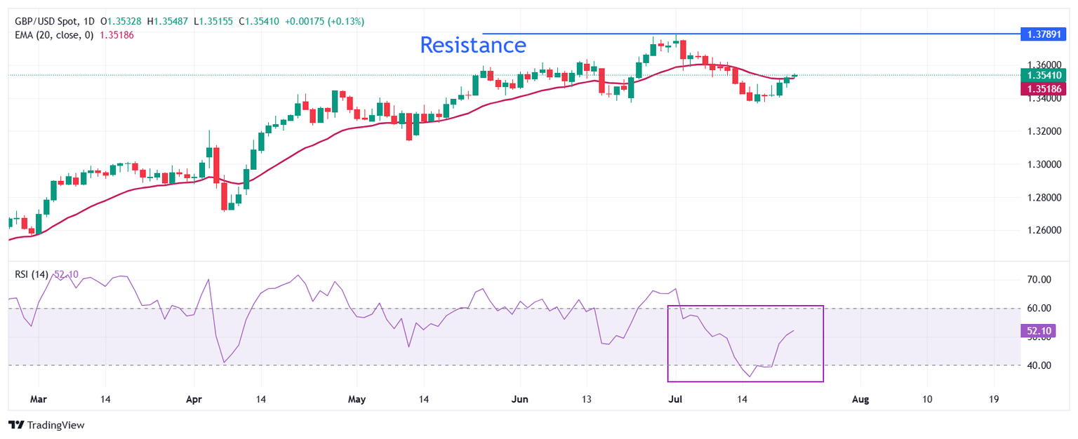 GBP/USD stays in a consolidation phase above 1.3500 after posting gains on Monday and Tuesday. The improving risk sentiment and the technical outlook suggests that the pair could stretch higher in the near term.