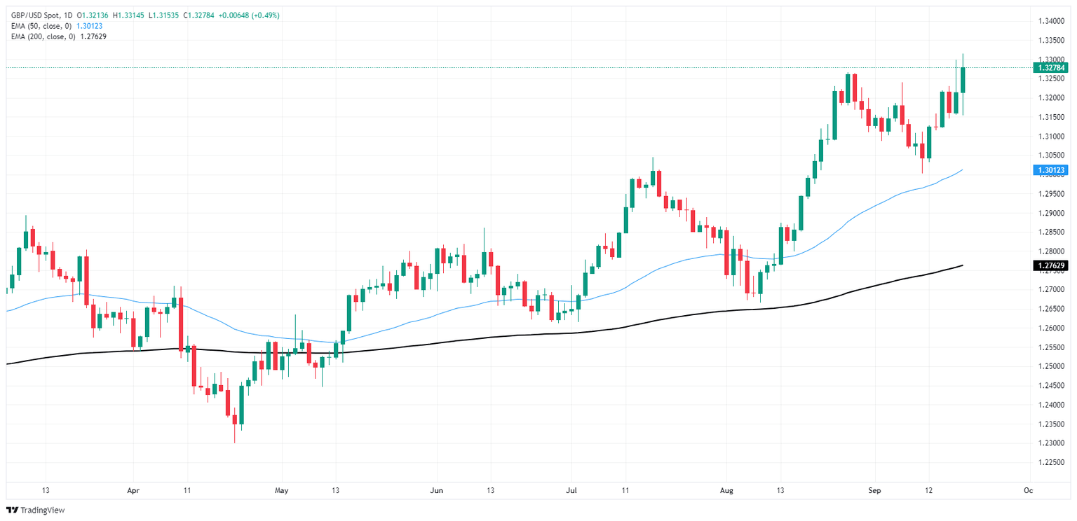 GBP/USD found a fresh 30-month high bid on Thursday, with a broad-market selloff in the US Dollar sparking a risk bid in Cable and bolstering the Pound Sterling. The Federal Reserve’s (Fed) 50 bps cut this week helped galvanized global markets into a risk-on stance, while the Bank of England’s (BoE) fearful rate hold did little to spark further strength under the GBP.