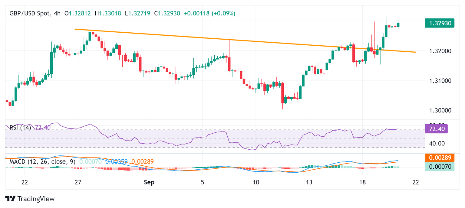 The GBP/USD pair trades with a positive bias for the third straight day on Friday and hovers around the 1.3300 mark during the Asian session, just below its highest level since March 2022 touched the previous day.
