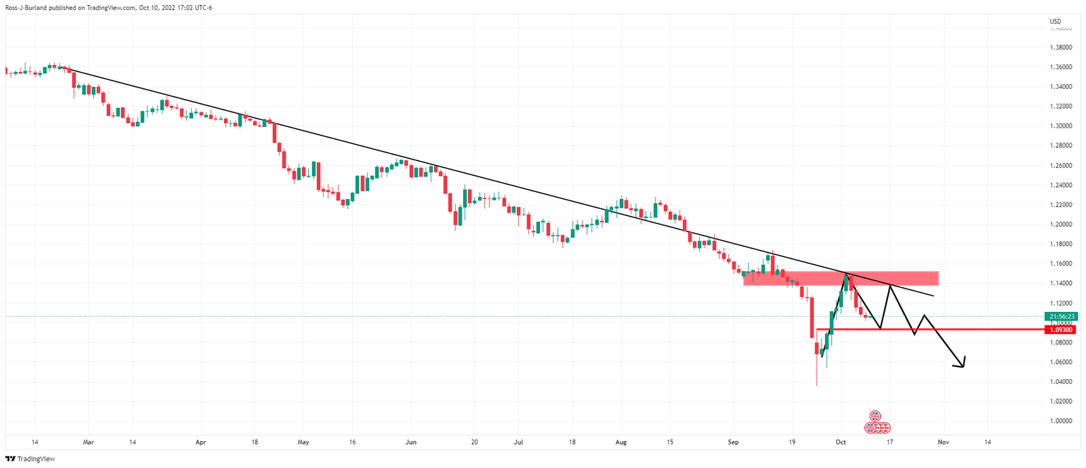 GBP/USD is a sinking ship and the bears are eyeing a move back towards all-time lows for the foreseeable future. With that being said, a bullish correction could be in order and the following illustrates the potential for a move back towards higher volumes that line up against a declining trendline resistance prior to the next series move to the downside.