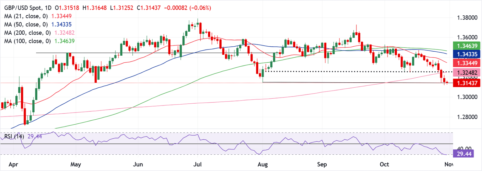 However, the US Federal Reserve's (Fed) hawkish tilt helps limit a deeper USD pullback. This, along with concerns about the UK's fiscal situation, might hold back traders from placing aggressive bullish bets around the British Pound (GBP) and cap the GBP/USD pair. The Office for Budget Responsibility (OBR) is expected to lower its UK productivity forecast by approximately 0.3%, which could exacerbate the budget deficit by over £20 billion by 2030. Current UK government finances already reflect a £22 billion shortfall, putting pressure on Chancellor Rachel Reeves to increase taxes or borrow more in the November budget. Read more...