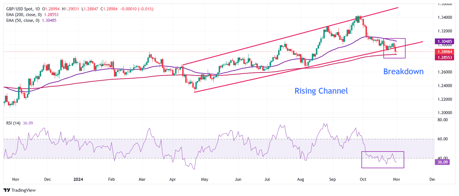 The GBP/USD pair remains on the defensive around 1.2895, the lowest since August 16 during the early Asian trading hours on Friday. The major pair edges lower after the UK Labour government announced its first Autumn Forecast Statement on Wednesday.