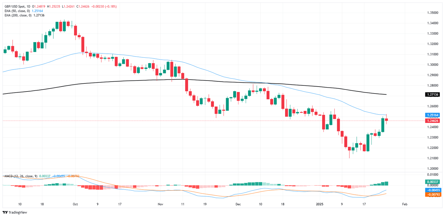 The GBP/USD pair halts its three-day winning streak as the British Pound (GBP) faces headwinds due to growing market expectations of a near-certain rate cut by the Bank of England (BoE) to 4.5% at its upcoming meeting. During Tuesday's Asian session, the pair trades around 1.2440.