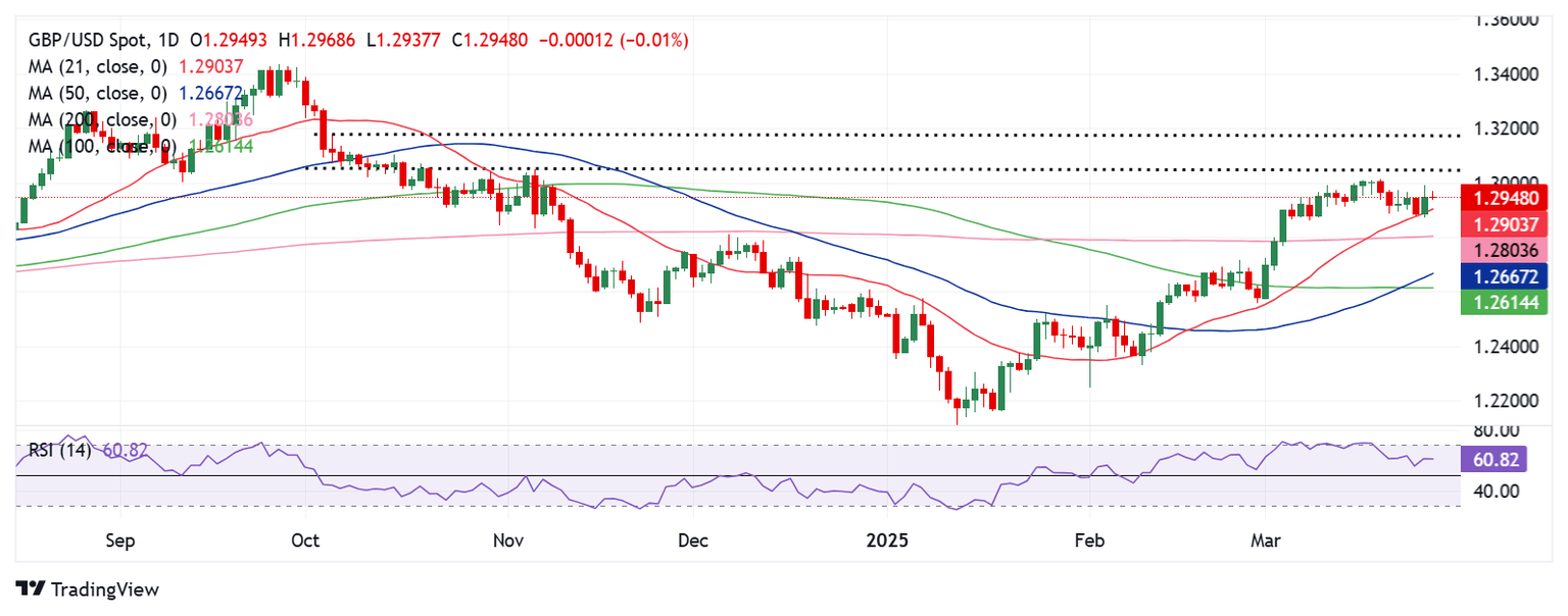The GBP/USD pair gathers strength to near 1.2965 during the Asian trading hours on Monday. The concerns that US President Donald Trump's tariffs will ignite inflation and dampen economic growth weigh on the US Dollar (USD) and act as a tailwind for the major pair.