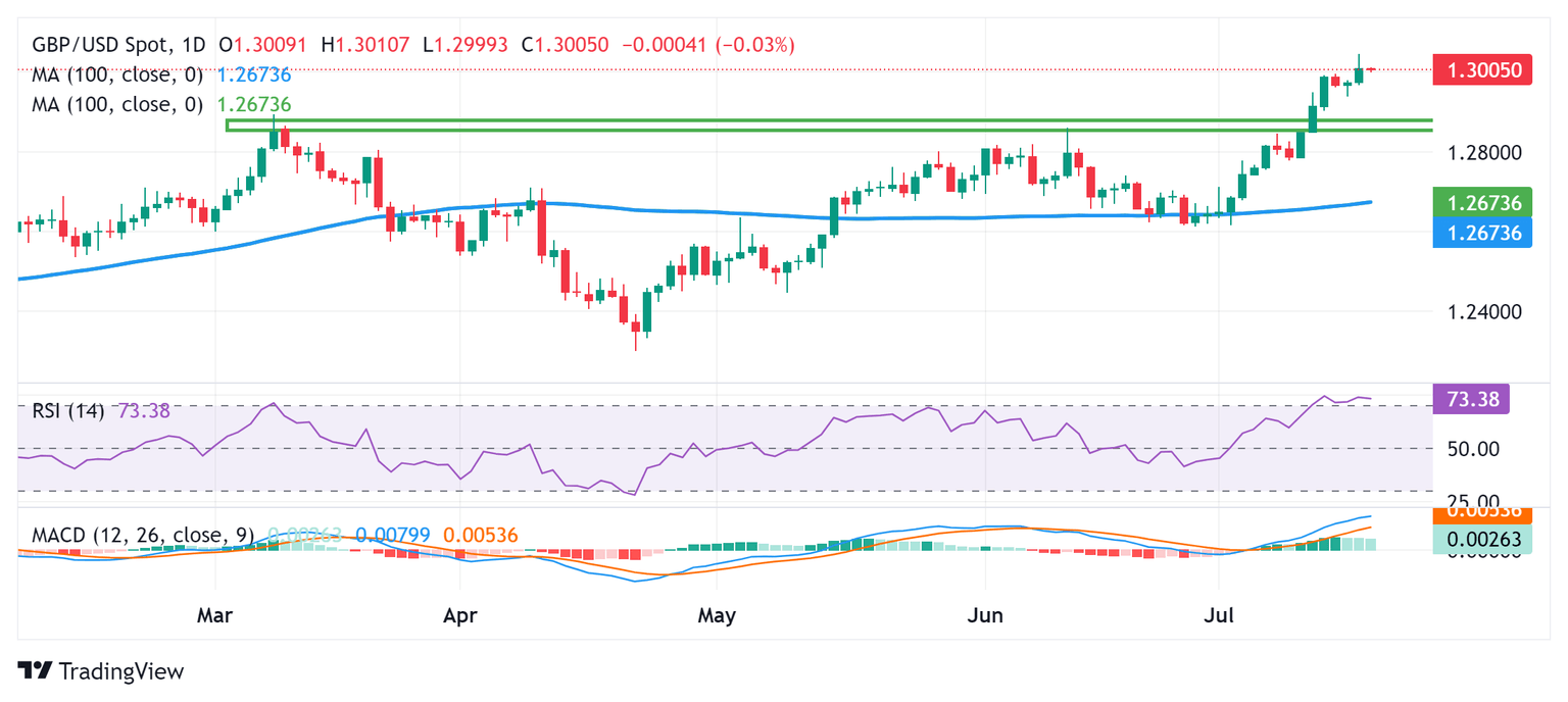GBP/USD Price Analysis: Bulls turn cautious amid overbought RSI, downside potential seems limited