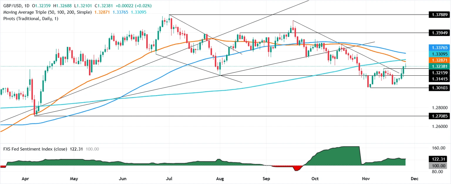 The GBP/USD pair remains steady at around 1.3230 on Thursday as market participants digest the UK’s Autumn Budget amid thin trading liquidity conditions, with US markets remaining closed in observance of the Thanksgiving holiday. At the time of writing, the pair is flat at 1.3232, virtually unchanged. Read More...
